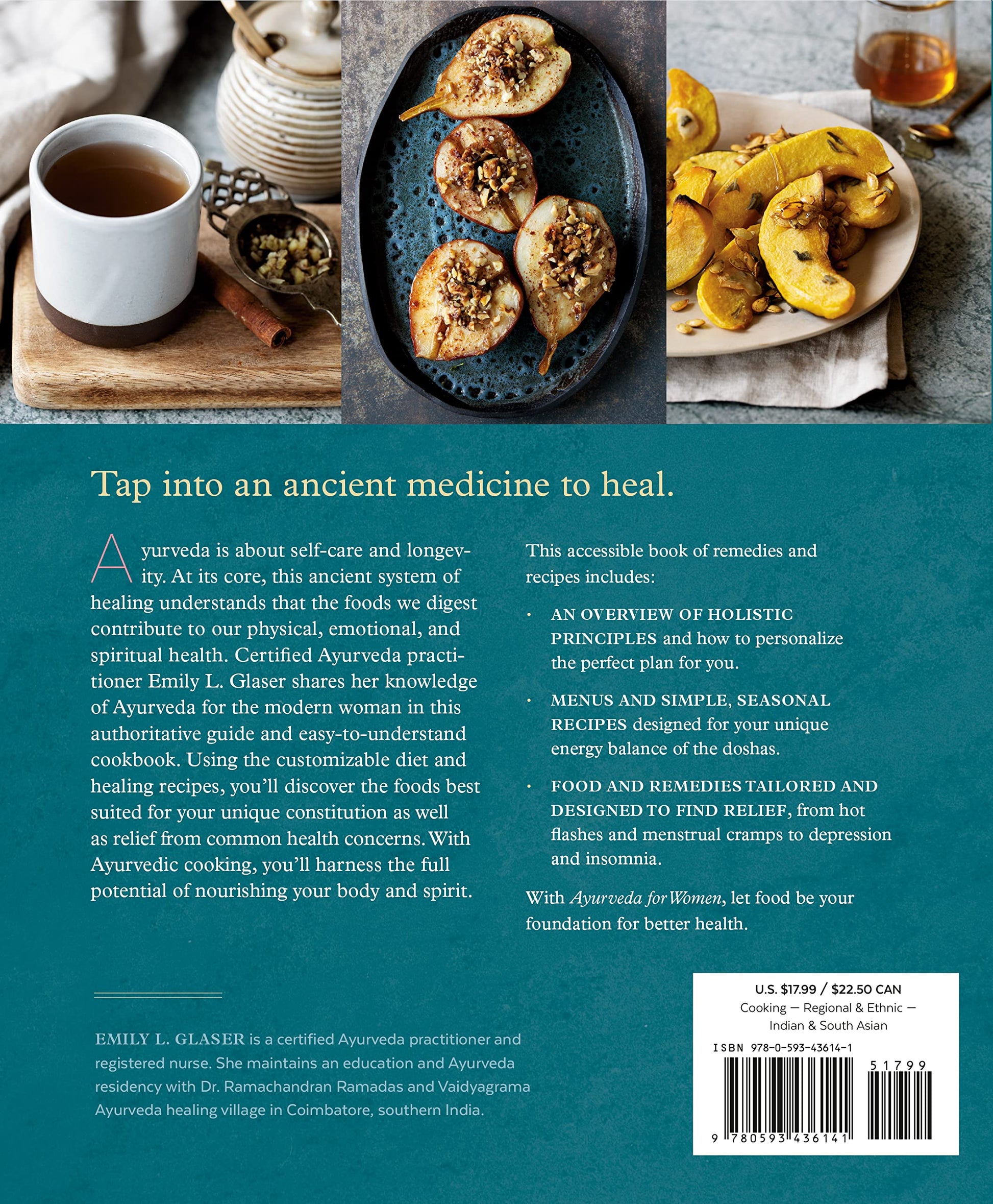Practiced for over 5,000 years in India, Ayurveda is the health-care manual for balanced energy and finding relief from ailments that affect a woman’s well-being. Certified Ayurveda practitioner Emily L. Glaser shares her knowledge of this holistic medicine in an accessible way—with guidance on how to integrate Ayurveda on the path toward healing and balanced living. The power of Ayurveda’s timeless wisdom, writes Glaser, can be found in the kitchen and what you put in your body. Every meal is an opportunity to choose food as medicine, and when you do, Ayurvedic cooking can be a powerful approach to taking control of your health while supporting the demands of day-to-day life. This Ayurveda book includes: